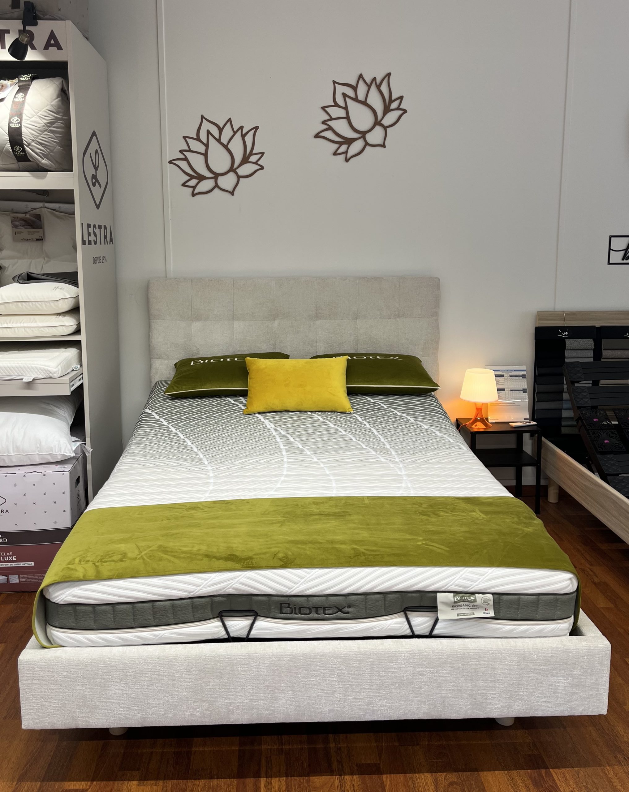 Au showroom JPDM Literie de Monistrol‑sur‑Loire, vous pouvez essayer chaque modèle en situation réelle : allongez‑vous, bougez, sentez la ventilation. Nous analysons votre morphologie, votre position de couchage et la température de votre chambre pour associer le matelas à un sommier parfaitement complémentaire.