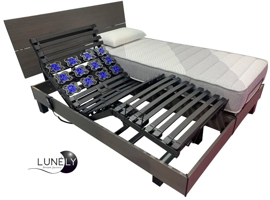 Pour un confort sur mesure, découvrez une sélection de lits électriques de la marque Lunély. Grâce à une télécommande, ajustez la position de vos jambes, de votre dos ou relevez la tête à votre convenance. Idéal pour les personnes souffrant de douleurs lombaires, de jambes lourdes ou pour simplement lire et se détendre au lit.
